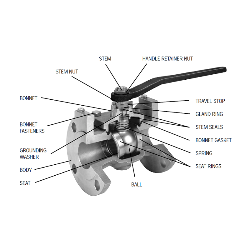 * Cấu tạo của van bi gồm các thành phần chính như sau: