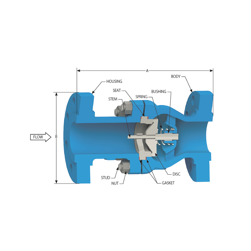 Là loại van hoạt động trên cơ chế khi môi chất đi qua van, lực đẩy của môi chất sẽ là cho đĩa van trượt lên trên & cho phép dòng chảy lưu thông. Khi dòng chảy ngưng lại, do trọng lượng của đĩa van sẽ tác động là đĩa van trượt xuống vị trí đóng ban đầu và ép vào đệm cao su làm kín, ngăn cho dòng chảy lưu thông ngược lại.