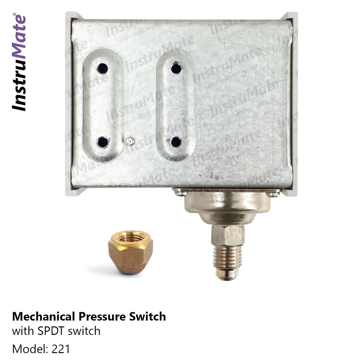 Do you need to protect your refrigeration system from excessively low suction pressure or excessively high discharge pressure with economic prices?Switch-Mate 221 is the answer. They are reliable to start or stop your refrigeration compressors or fans on air-cooled systems. They are easy to set up followed with the instruction manual. InstruMate model 221 offers various application possibilities with non-corrosive media like oil, water and air.