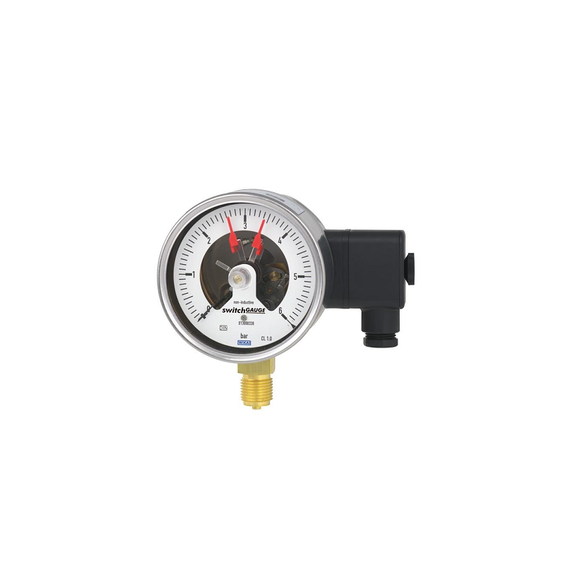 Wherever the process pressure has to be indicated locally and, at the same time, circuits need to be switched, the model PGS21.1x0 switchGAUGE finds its use. Switch contacts (electrical alarm contacts) make or break an electric control circuit dependent upon the position of the instrument pointer. The switch contacts are adjustable over the full extent of the scale range (see DIN 16085), and are mounted predominantly below the dial, though also partly on top of the dial.