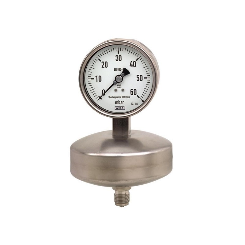 These capsule pressure gauges are used when extremely-low pressures must be displayed on site. The instruments can be overloaded up to 50 times the full scale value without any problems.