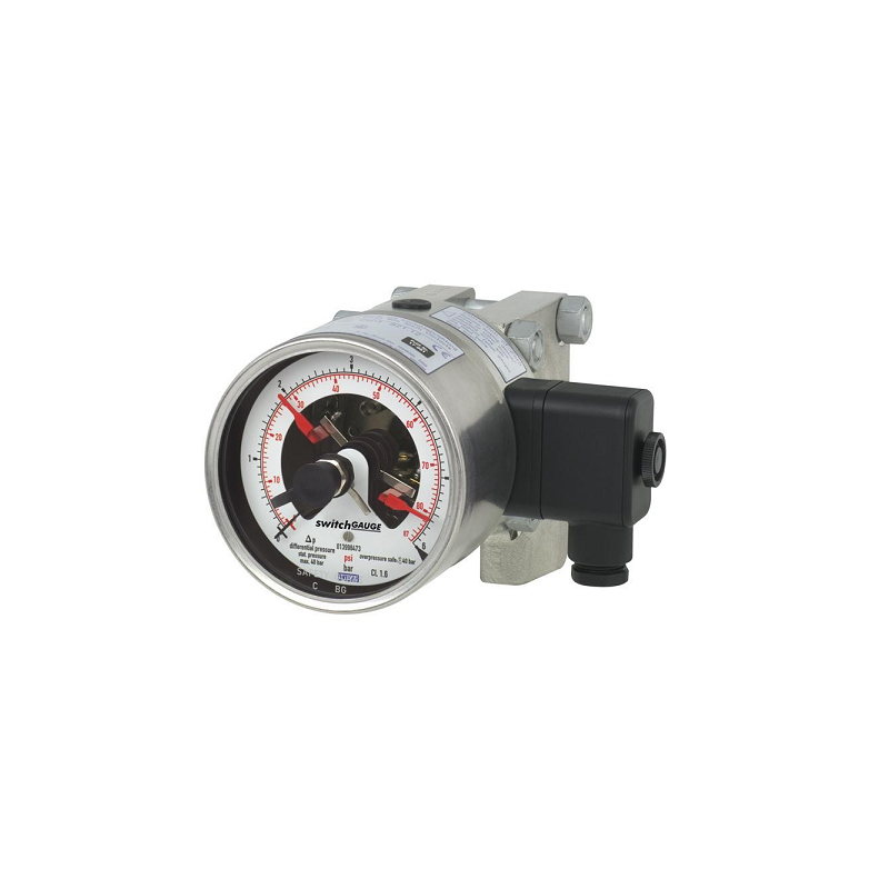Wherever the process pressure has to be indicated locally and, at the same time, circuits need to be switched, the model DPGS43HP.1x0 switchGAUGE finds its use. Switch contacts (electrical alarm contacts) make or break circuits dependent upon the pointer position of the indicating measuring instruments. The switch contacts are adjustable over the full extent of the scale range (see DIN 16085), and are mounted predominantly below the dial, though also partly on top of the dial.