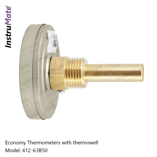 Model 412 InstruMate Economy thermometers also known as hot water thermometers are suitable for use in numerous applications such as HVAC, boilers and heating systems as well as machinery manufacturing.