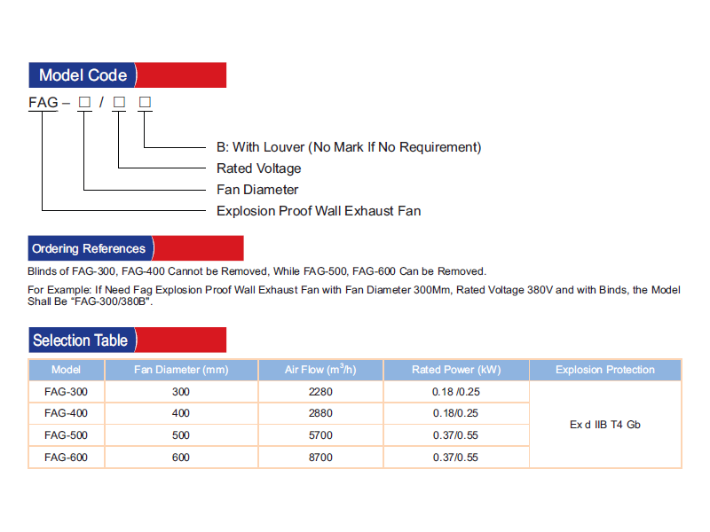 QUẠT HÚT CHỐNG CHÁY NỔ MODEL FAG-400