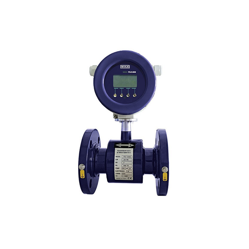 A WIKA signal converter, either attached directly to the instrument or separated from it (e.g. model FLC-608), generates the current to supply the magnetic coil, detects the potential difference between the electrodes, processes the signal to calculate the flow and manages communication with the external control systems.