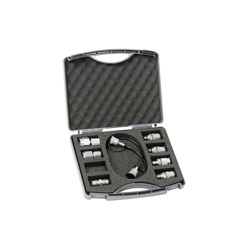 Both connection sets contain various test couplings for adapting to WIKA calibration instruments to existing processes with quick-release couplings series MINIMESS® 1620 or MINIMESS® 1215. The selection and quantity ofadapters is specifically configured for the various WIKA calibration instruments.